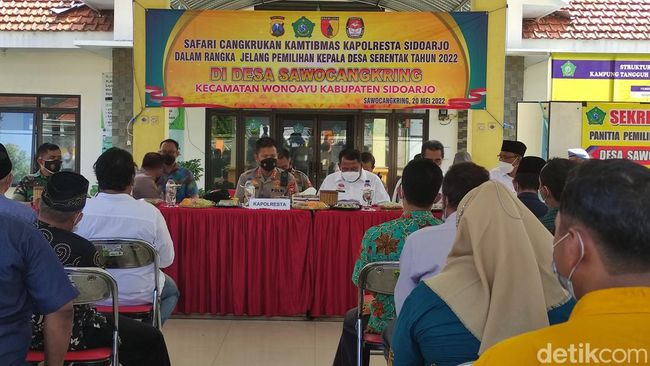 Hal itu disampaikan oleh Kapolresta Sidoarjo Kombes Kusumo Wahyu Bintoro usai melakukan sosialisasi kamtibmas ke desa-desa. Salah satunya dengan mengadakan cangkrukan kamtibmas di balai desa Sawocangkring Kecamatan Wonoayu.