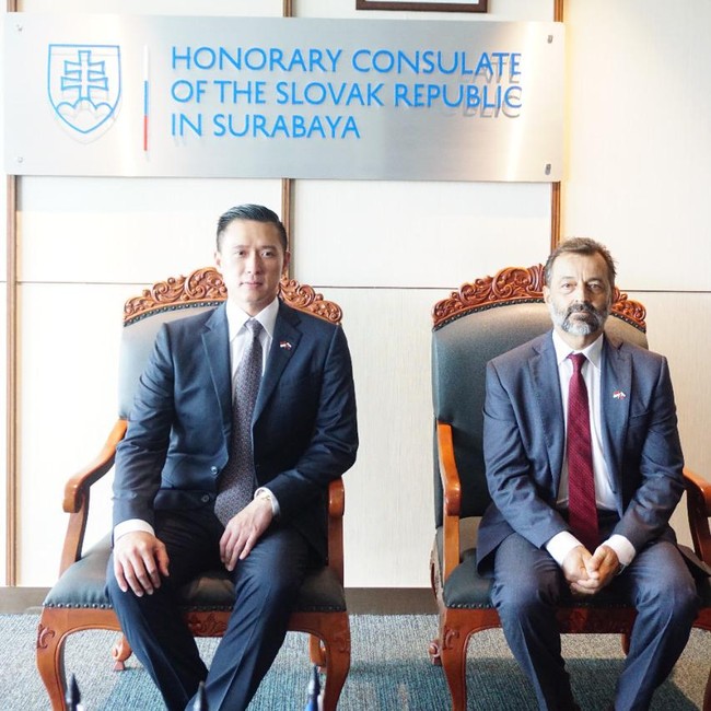 Konsul Kehormatan Republik Slowakia untuk Republik Indonesia resmi membuka kantor di Surabaya, Jumat (20/5/2022). Kantor itu berlokasi di gedung The Samator lantai 16, Surabaya. Kantor ini berfungsi sebagai media komunikasi dan informasi, diplomasi, dan sinergi antar dua negara.