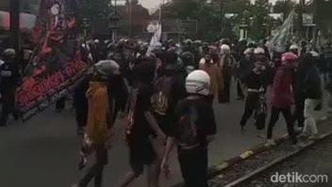 Dalam kedua video tersebut tampak massa berpakaian hitam-hitam berlarian. Tak hanya itu, kedua massa juga saling mengumpat dan melempar batu.