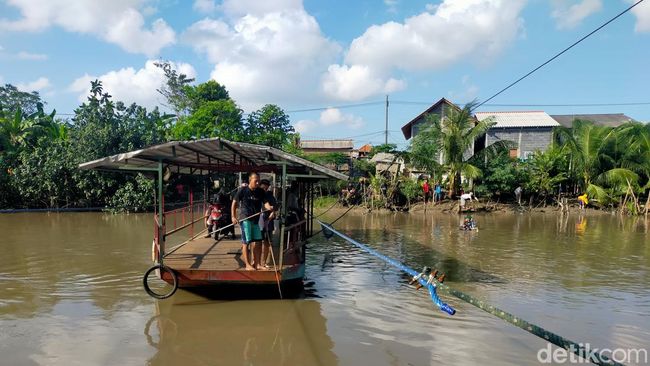 "Iku-iku onok iwak, ndang dijaring (Itu-itu ada ikan, cepat dijaring)," teriak salah satu warga di atas perahu tambang, Senin (23/5/2022).