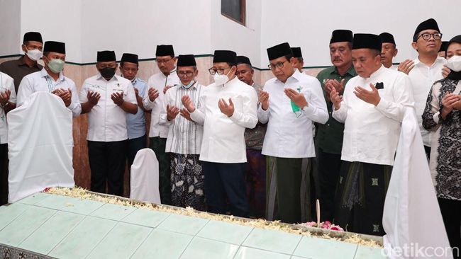 Ketua Umum Partai Kebangkitan Bangsa (PKB) Muhaimin Iskandar melakukan ziarah kubur ke makam waliyullah KH Abdul Hamid dan Habib Jakfar bin Syaikhon Assegaf, di Kota Pasuruan, Senin (23/05/22). Kunjungan ke Pasuruan itu digelar sehari setelah Cak Imin bersama para habaib dan kiai bersilaturahmi serta berdoa bersama untuk Rusia-Ukraina di Surabaya.