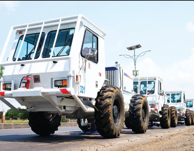 Armada ini didatangkan khusus untuk meneliti struktur bawah permukaan bumi. Vibroseis ini milik Pertamina Hulu Energi yang ditunjuk oleh Kementerian ESDM.