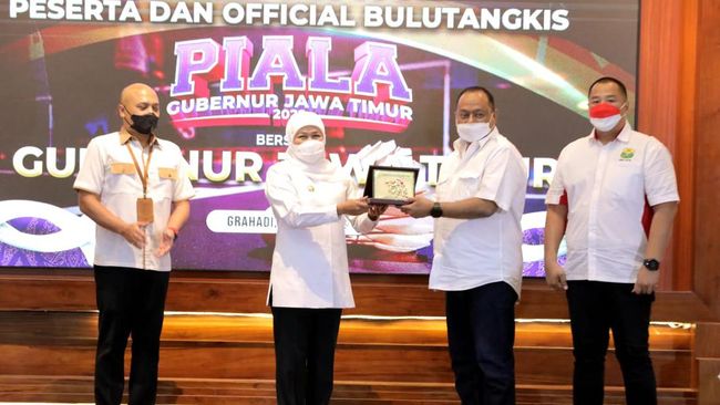 Khofifah juga mengapresiasi semangat Pengprov PBSI Jatim yang dapat menyiapkan perhelatan kejuaraan Bulu Tangkis Piala Gubernur dalam waktu cukup singkat.