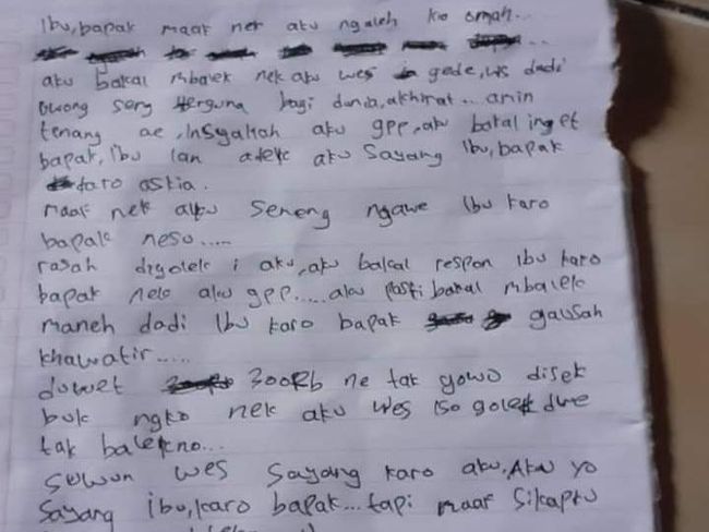 Dalam suratnya, Syifa meminta maaf kepada kedua orang tuanya. Ia juga berjanji akan kembali jika nanti sudah menjadi orang yang berguna. Berikut isi surat yang ditinggalkan Syifa:
