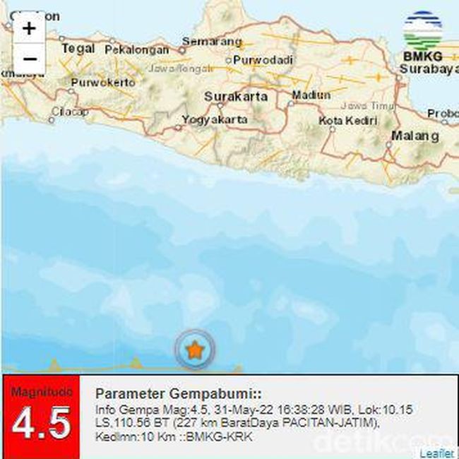 Gempa mengguncang Pacitan beberapa kali hari ini, Selasa (31/5/2022). Hingga pukul 17.30 WIB, gempa sudah empat kali mengguncang Pacitan.