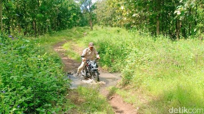 Untuk menuju lokasi, detikJatim diantar perangkat Desa Mojorayung menggunakan sepeda motor. Mulai masuk kawasan hutan, terdapat bangunan gedung balai diklat milik perhutani KPH Madiun.