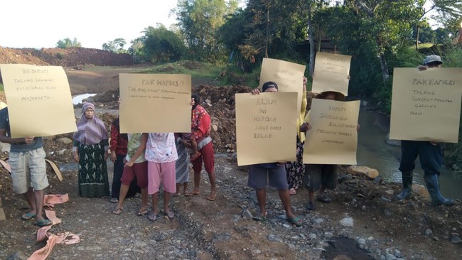 "Tuntutan warga segera ditutup karena dampak-dampaknya bagi masyarakat Dusun Seketi. Masyarakat hanya dikasih kompensasi Rp 100 ribu. Penggalian kedalaman tidak sesuai izin, penggalian lebih dari 20 meter. Kalau di izinnya paling tidak 15 meter. Ada yang keluar dari titik koordinat. Saluran irigasi terputus, pengairan pertanian airnya keruh," jelasnya.