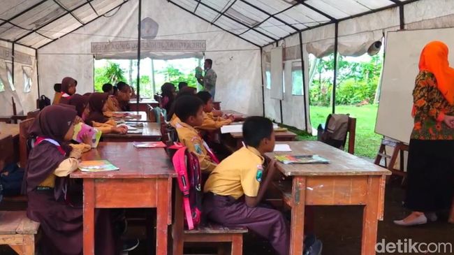 "Belajar di tenda ini suasananya pengap. Pas hujan becek. Ya, harapannya kelasnya dibangun supaya bisa belajar lagi di kelas," kata salah satu siswa Firman.