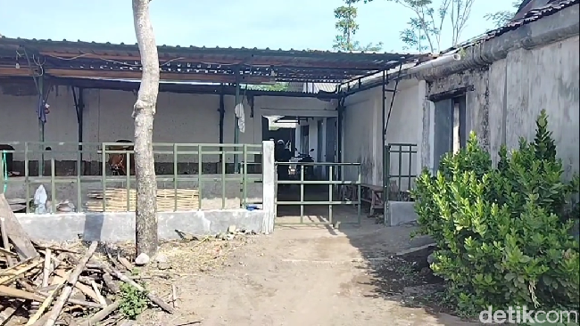Kelompok Tani Ternak di Desa Bades, Kecamatan Pasirian, Lumajang mengumpulkan sapi-sapi yang terjangkit Penyakit Mulut dan Kuku (PMK). Para sapi ini diisolasi di dalam satu kandang secara komunal.