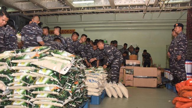 Dalam kegiatan kemanusiaan ini TNI AL menurunkan KRI Makassar-590 dari Koarmada II, dengan membawa bahan kontak berupa beras, mi instan, gula, air mineral dan selimut. Lalu alat kebersihan berupa sabun mandi, sabun cuci, pasta gigi, sikat gigi dan pempers untuk balita.