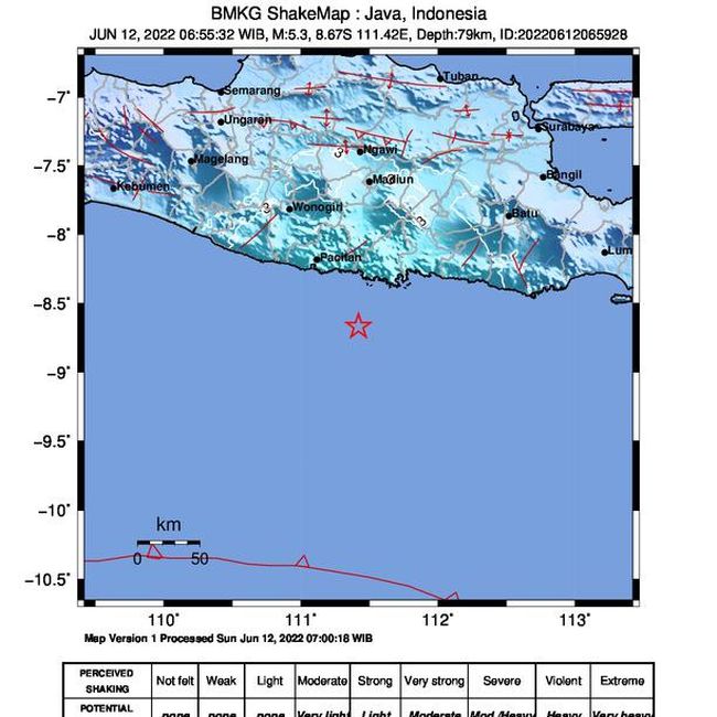 Gempa M 5,3 mengguncang Pacitan. Getaran gempa Pacitan juga dirasakan hingga ke Jateng dan Jogaj.
