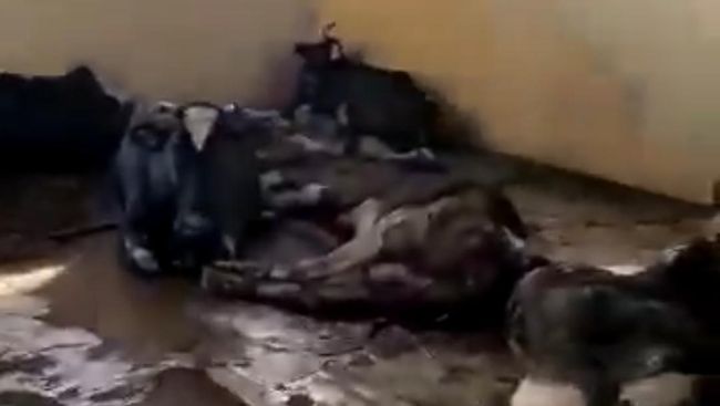 Video berdurasi 1 menit 1 detik itu memperlihatkan kamera yang menyorot sapi-sapi tergeletak lemas di tepi dan sudut bangunan. Hampir semua sapi berwarna hitam putih itu dalam keadaan duduk dan tergolek.