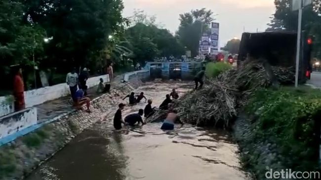 Akibatnya, muatan tebu tumpah ke sungai di sisi kiri jalan bersama 8 penumpang di atas truk. Sedangkan truk hanya terguling di bahu jalan.