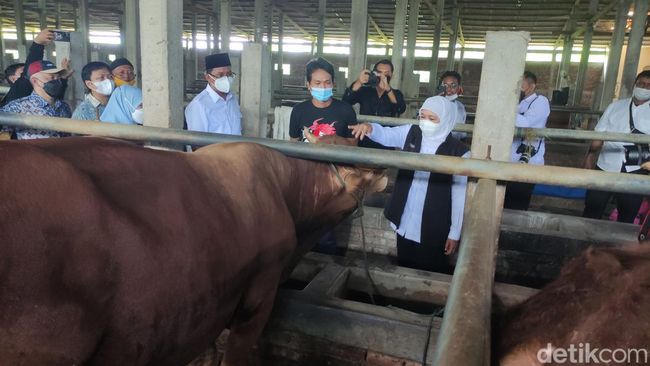 "Di mana masyarakat yang membutuhkan hewan kurban bisa mengakses di kandang Sidoarjo. Memang dari pemilik terkonfirmasi sudah banyak yang sudah dipesan, artinya semua hewan-hewan yang ada di kandang ini aman bagi masyarakat," kata Khofifah di kandang hewan korban, Jumat (17/6/2022).