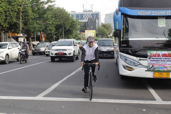 "Kalau sepedaan jarak jauh itu juga perlu didukung moda transportasi massal, misalkan dari naik sepeda, lalu berpindah naik Bus Suroboyo, ini harus di-support antara halte Bus Suroboyo dengan tempat parkir (sepeda) yang aman," jelasnya.