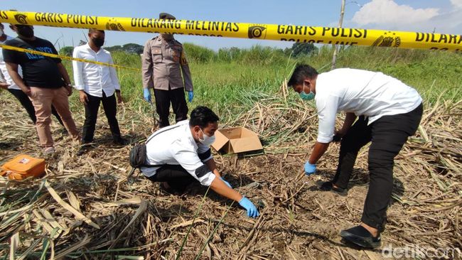Jasad perempuan yang tinggal kerangka ditemukan penebang tebu di perkebunan Jalan Raya Mlirip, Jetis, Mojokerto. Seutas tali rafia yang disinyalir untuk mengikat mayat ditemukan di lokasi.