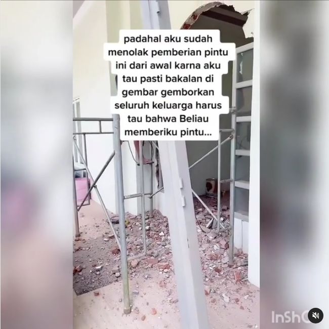 "Padahal aku sudah menolak pemberian pintu ini dari awal karena aku tahu pasti bakalan digembar-gemborkan seluruh keluarga harus tahu bahwa beliau memberi ku pintu," tambah keterangan di postingan tersebut.