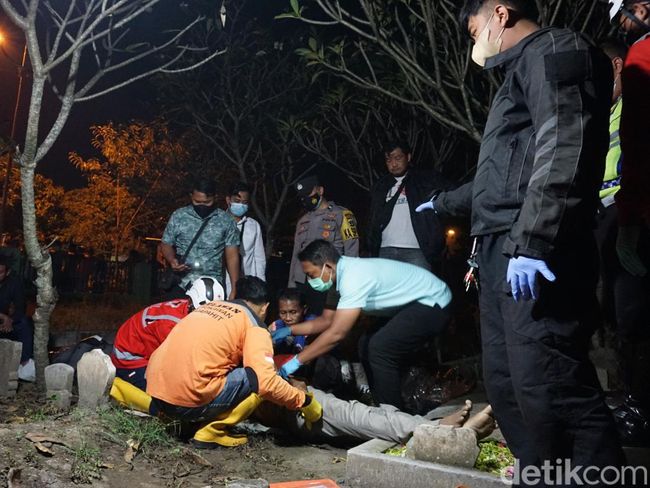 Sekitar 30 menit kemudian, Bambang yang kembali ke makam untuk menyalakan lampu, menemukan korban sudah tewas. Andri duduk bersila dengan badan tengkurap di makam sang istri.