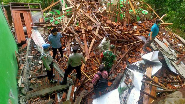 "Peristiwanya itu pagi tadi, saat itu tanah yang ada di bagian belakang sekolah longsor, kondisi tersebut menyeret konstruksi gedung yang ada di atasnya," kata Andi saat dikonfirmasi.