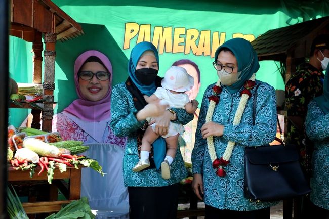 Adeline yang belum genap berusia 2 tahun sepanjang berlangsungnya kegiatan tak pernah lepas dari gendongan istri Wabup Blitar, Venina Santoso yang ikut hadir mendampingi tim juri.