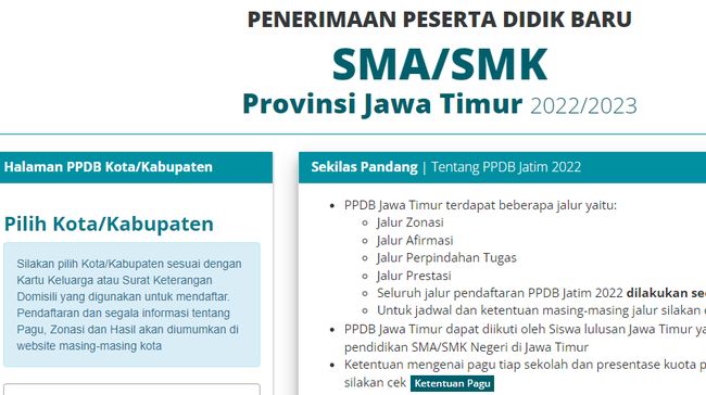 - Buka situs PPDB Jatim 2022 melalui link https://ppdbjatim.net/