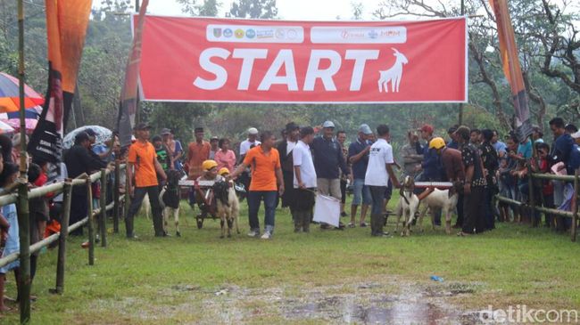 Sayangnya, hujan membuat karapan kambing tahun ini batal diikuti 25 peserta. Hanya 6 peserta yang meramaikan perlombaan kali ini.