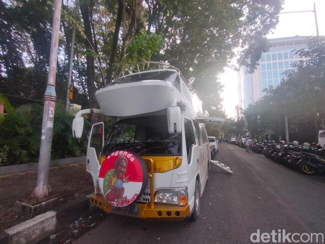 Sang Kepala Keluarga Kura-kura mengajak detikJatim melihat secara detail interior dan eksterior karavan. Mobil itu merupakan Isuzu Elf 2012 dengan kapasitas mesin 2800cc.