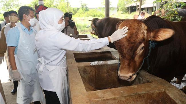 "Di tengah wabah penyakit mulut dan kuku (PMK) pada hewan ternak, kami ingin memastikan bahwa masyarakat Jatim bisa beribadah dengan baik utamanya ketika salat Idul Adha dan dapat melakukan penyembelihan hewan kurban. Sehingga proses penyembelihan sampai penyaluran hewan kurban bisa aman dan higienis," ungkap Khofifah dalam keterangannya, Senin (27/6/2022).