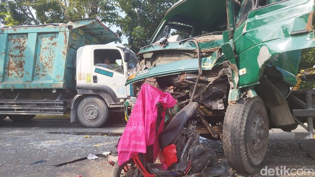 "Korban ini teman adik saya, mau antar barang dari Bungah menuju Sidayu. Nah, di depannya tadi ada dump truk yang berhenti mendadak. Karena nggak menjaga jarak, truk kontainer yang belakang ini menabrak dump truk depannya, korban yang berada di antara dua truk itu tergencet," lanjut Elang.
