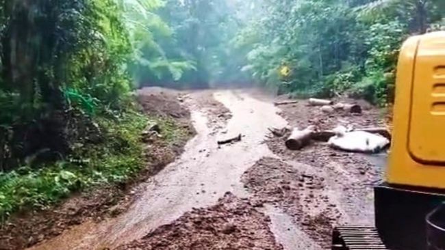Longsor terjadi di jalur menuju Kawah Ijen tepatnya di Erek-Erek, akibat hujan dengan intensitas yang tinggi pada, Senin (27/6/2022). Material longsor seperti lumpur dan kayu, menutupi jalur menuju Kawah Ijen sepanjang 30 meter dengan tinggi empat hingga enam meter.