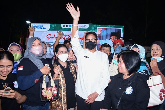 Momen unik terjadi ketika Menteri Pariwisata dan Ekonomi Kreatif Sandiaga Uno menghadiri pelatihan UMKM yang digelar oleh Gekrafs Jatim bekerja sama dengan Yayasan Indonesia Setara (YIS) Rabu (29/6). Beberapa peserta pelatihan mendukung Sandiaga untuk menjadi calon Presiden RI tahun 2024