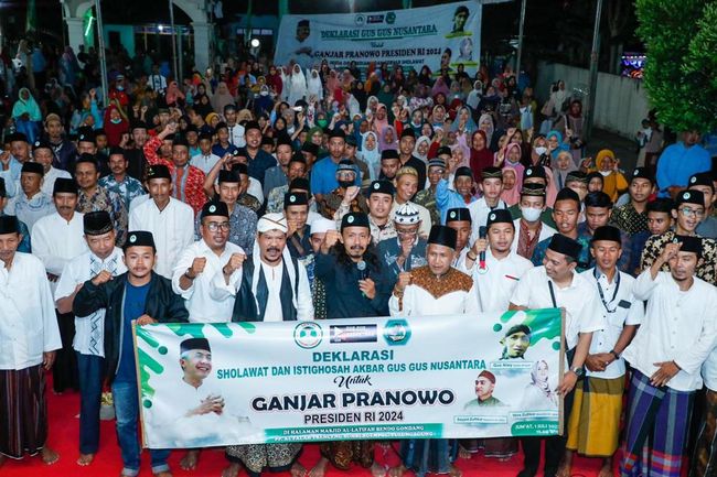 Deklarasi dukungan terhadap Gubernur Jawa Tengah (Jateng) Ganjar Pranowo untuk menjadi Presiden RI di 2024 datang dari ribuan ulama dan santri yang tergabung dalam Gus-Gus Nusantara (GGN). GGN juga melaksanakan gebyar sholawat dan doa bersama untuk Ganjar.