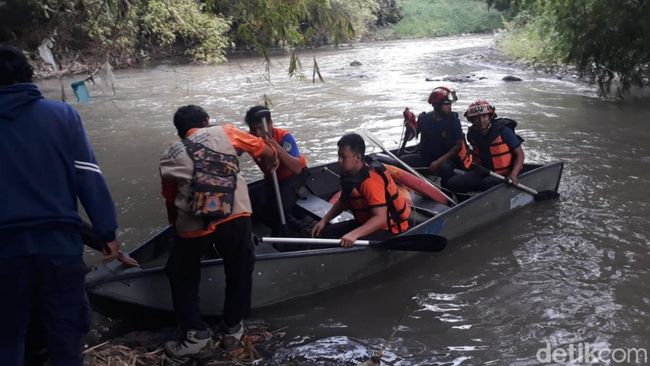 Petugas BPBD bersama puluhan warga kemudian melakukan pencarian mulai titik awal korban terlihat hingga radius ratusan meter. Meski banyak pohon bambu yang menghambat pencarian, petugas dan warga terus mencari.
