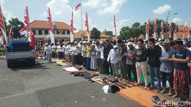 Dari pantauan detikJatim, ada sekitar 9 shaf massa yang memakai baju hitam dan putih melalukan salat berjemaah. Setelah melakukan salat, mereka langsung menutup Jalan Gubernur Suryo. Mereka menuntut gubernur Jatim dan pejabat lainnya keluar menemui massa.