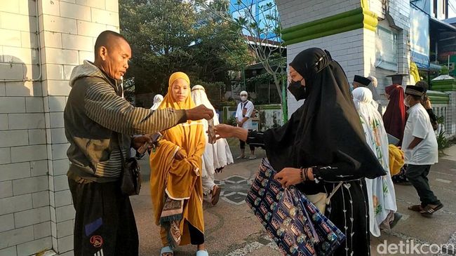 Tak sedikit jemaah yang berhenti sesaat untuk membeli dagangan Bonandi. Padahal mereka sudah membawa sajadah. Namun jemaah yang rata-rata wanita merasa perlu memasang lapisan di bawah sajadah. Ini karena lokasi duduknya di halaman.