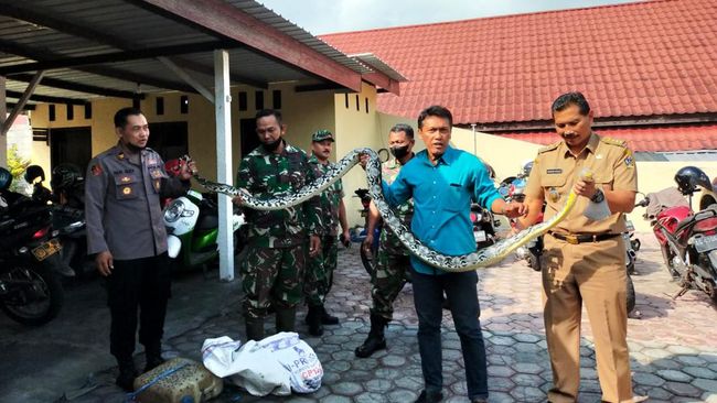 Setelah dievakuasi, ular sanca telah diamankan oleh petugas. Ular sanca kembang sepanjang 4 meter itu akan diserahkan ke petugas Damkar.