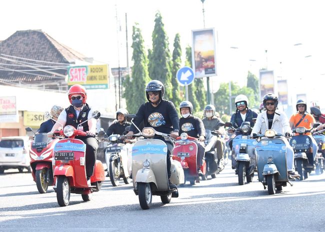 Suara mesin mulai berbunyi penanda pengendara vespa rolling thunder bersiap untuk mengelilingi Kabupaten dan Kota Kediri. Begitupun Bupati Kediri Hanindhito Himawan Pramana yang juga mempersiapkan tunggangan merahnya itu.