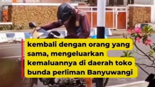 Aksi yang dilakukan nyaris sama seperti di depan Pendopo Banyuwangi. Pria misterius yang naik sepeda motor bebek itu berhenti sebentar, lalu memainkan alat vitalnya kemudian bergegas pergi.