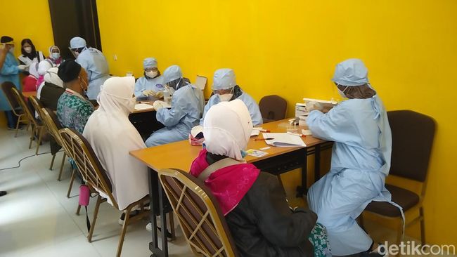 Seluruh jemaah haji kloter pertama tiba di Asrama Haji Sukolilo, Surabaya. Kedatangan 446 jemaah haji itu langsung disambut dengan tes antigen dan PCR COVID-19.