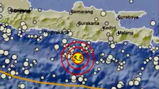 Sebelumnya BMKG mencatat adanya aktivitas gempa bumi berkekuatan 5,5 magnitudo, pada pukul 16.13 WIB. Gempa terjadi pada kedalaman 10 kilometer dan berpusat di 111 kilometer barat daya Pacitan. Titik koordinat gempa berada di 9.14 Lintang Selatan (LS) dan 110.83 Bujur Timur (BT).