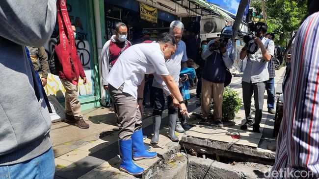 Usai mengecek, Eri menyebut bahwa saluran air perlu dikoneksikan satu dengan lainnya. Tidak hanya terhubung dengan box culvert dan pedestrian saja. Salah satunya seperti di Jalan Kayoon yang terdapat riol (saluran pembuangan air) Belanda.