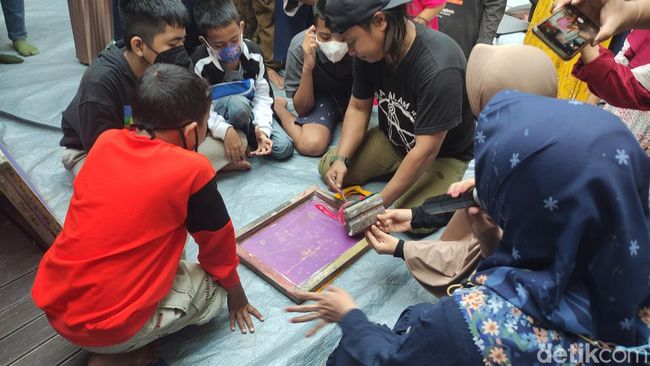 15 anak berkebutuhan khusus di Warung Galena Desa Banjarbendo, Kecamatan Kota, Sidoarjo belajar menyablon lukisannya sendiri. Kegiatan tersebut dalam rangka menyambut Hari Anak Nasionalis (HAN).