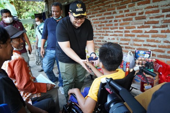 Bupati Kediri Hanindhito Himawan Pramana mendatangi rumah Sutrimo (70) untuk memberi bantuan. Sutrimo atau Mba Trimo ini setiap hari berjualan mainan balon karakter untuk menopang kebutuhan harian keluarganya.