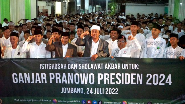 Sejumlah ulama dan santri Pondok Pesantren (Ponpes) Hamalatul Quran Jombang menggelar istighosah dan salawat akbar bersama relawan Sahabat Ganjar. Kegiatan dilakukan sebagai ajang silaturahmi sekaligus memanjatkan doa untuk Indonesia yang lebih baik.