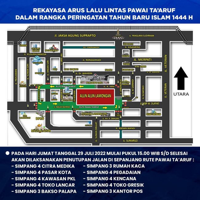 Kasat Lantas Polres Lamongan AKP Aristianto Budi Sutrisno mengatakan seiring dengan adanya pawai, pihaknya akan melakukan rekayasa lalu lintas. Rekayasa ini berupa penutupan jalan sementara selama pawai berlangsung.