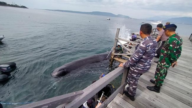 "Biasanya kan, menyelam kalau sudah muncul ke permukaan gini. Bisa jadi paus ini sudah tua dan sakit," ujar Subandi.