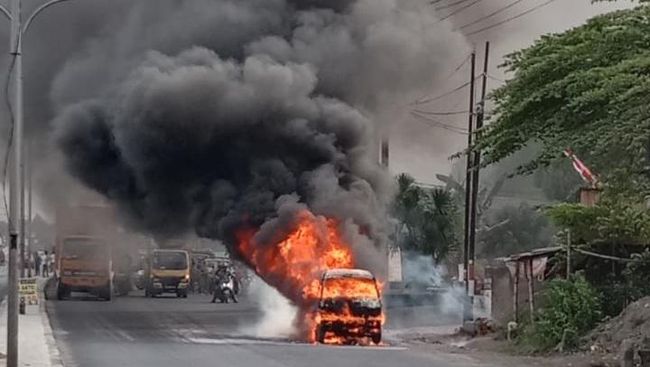 Api dengan cepat menjalar ke seluruh bagian mobil Carry. Kobaran api yang besar disertai asap tebal membumbung tinggi memaksa para pengguna jalan dari arah Jombang ke Mojokerto menghentikan lajunya. Antrean kendaraan pun terjadi di jalan nasional itu.