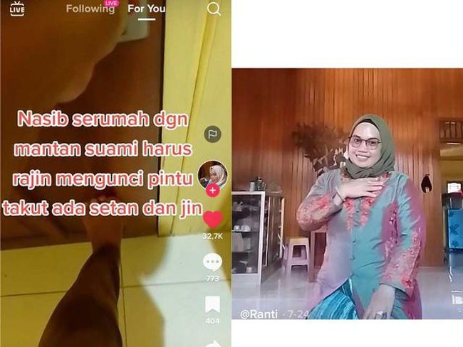 "Nasib serumah dengan mantan suami harus rajin mengunci pintu takut ada setan dan jin," tulis akun TikToknya @ranti1082.