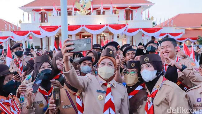 "Saya mengajak kepada kita semua, di depan Sang Saka Merah-putih ini, bahwa hati kita, pikiran kita, gerak dan langkah kita harus berseiring dengan semangat Merah-putih. Terlebih kita berada pada bulan Agustus, yakni bulan kemerdekaan," ujar Khofifah, Kamis (4/8/2022).
