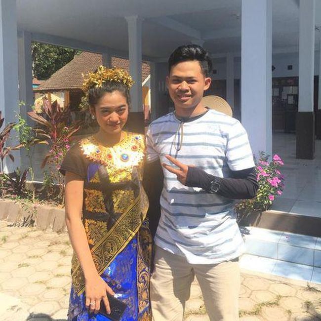 Dia pun memperlihatkan momen saat awal mula KKN, foto bersama anak Kepala Desa, dan memperoleh restu dari ibu Kepala Desa.